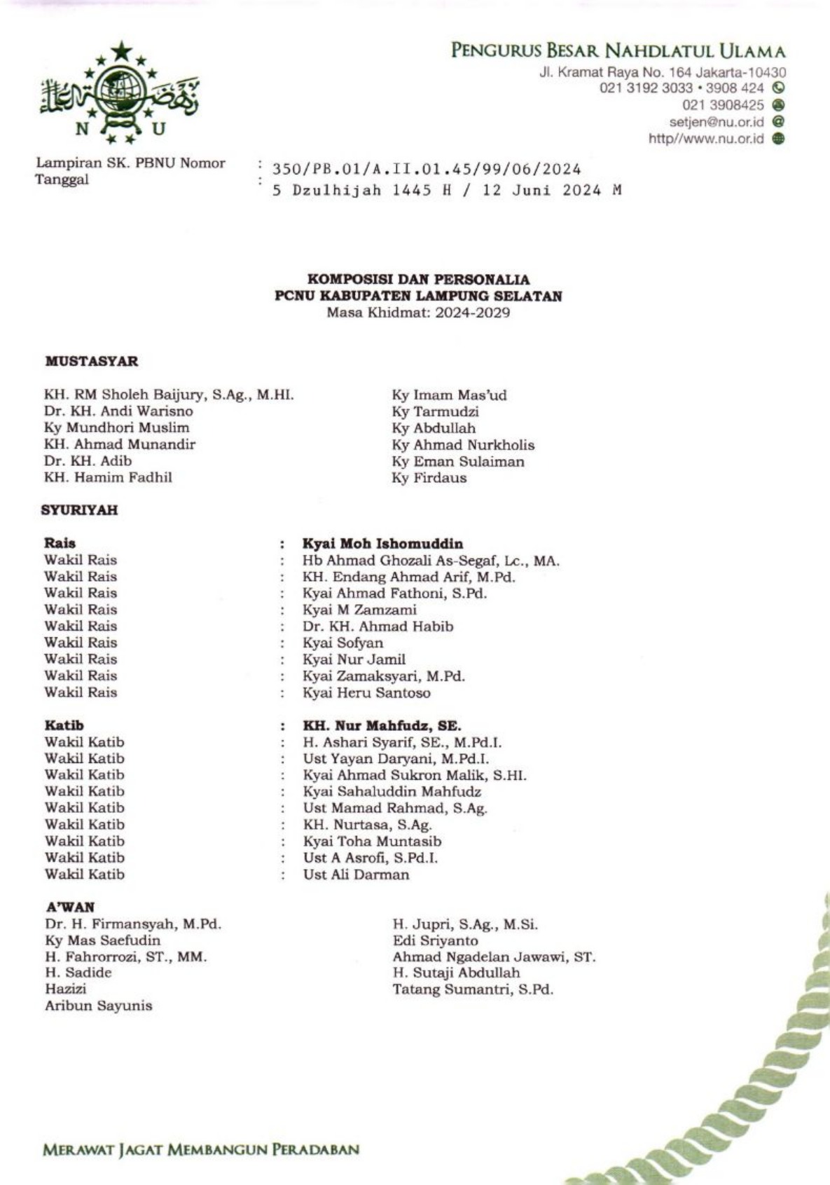 SK Pengurus PCNU Kabupaten Merauke Periode 2024-2029